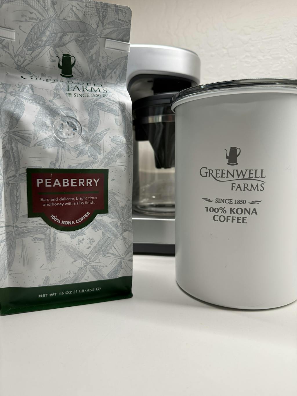 Greenwell Farms 100% Kona Coffee “Peaberry” is a literal rare treasure. Normally two hemispheric seed halves occupy the inside of the coffee cherry. Occasionally, about 3-5% of the time, one of the seed halves doesn’t fertilize and the result is a single round (oval) seed that we have come to call the Peaberry.